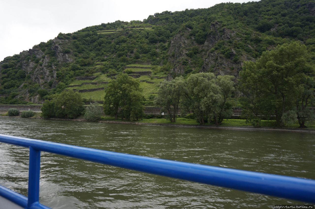 Посещению городка Rüdesheim am Rhein предшествовала долина Среднего Рейна с его замками по обеим сторонам.