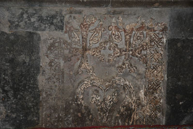 Притвор примыкает одновременно к двум церквям, остатки фресок видны только в храме