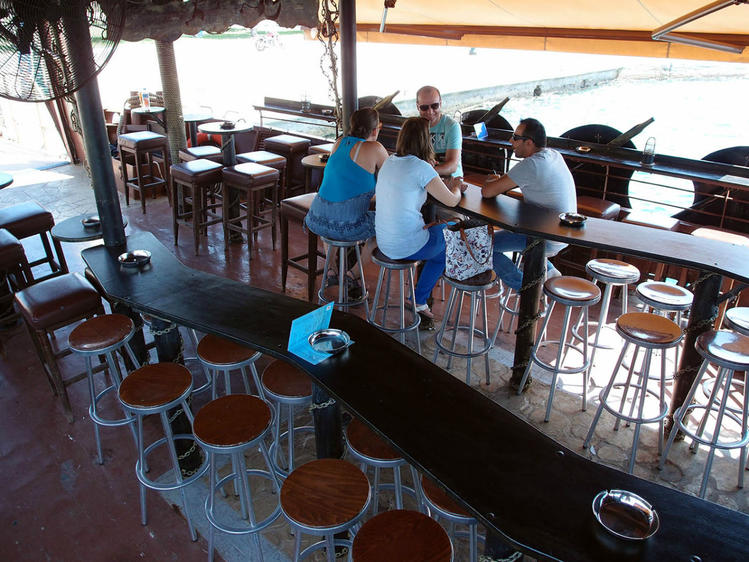 Именно из окон башни мной были запримечены две пиратские шхуны, которые на удивление долго не отчаливали от берега. Как оказалось, они представляют собой этакие плавучие бары, и за вход не взимается никакой платы, сиди сколько хочешь. Устроившись в тени на верхней или нижней палубе, можно наслаждаться напитками и прохладой — морской ветерок полностью перебивает жару.