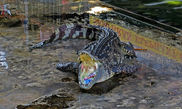 Буквально через десять минут после окончания «Шоу слонов в зоопарке Сампрана», на соседней площадке начиналось шоу крокодилов. Перейти туда — пара минут, так мы застали будущих выступающих в состоянии покоя и полного умиротворения Но тут к ним в вольер спустились пара тайцев. Надо понимать, что крокодилы — артисты по хлеще слонов будут. Это только в анекдотах они летают по арене, и аккомпанируют поющим бегемотам на фортепиано.