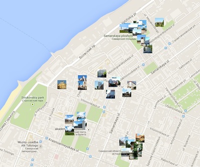 Цепочка зелёных площадей уходит вглубь города ещё на два квартала — до ул. Самарской. Именно там, между Самарской и Галактионовской (на уровне этой многоэтажки слева) находится Самарская (бывшая Приходская / Торговая / Воскресенская) Площадь, с которой и начиналась реконструкция этого сектора. Было это в начале 60-х, когда по периметру был построен комплекс солидных административных и жилых зданий с престижными магазинами на первых этажах, а действовавший на ней более сотни лет Воскресенский рынок уступил место новому скверу. Ну а Воскресенскую церковь (1864), как и четверть сотни других самарских церквей, коммунисты успели разрушить ещё к 1930-му году.
