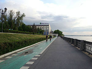На нижней дорожке вдоль всей Новой набережной проходит велосипедная дорожка. В российских городах не так часто можно встретить выделенную специальную полосу для велосипедов. А в Самаре она есть! Правда, катаются по ней не только велосипедисты, но и роллеры.