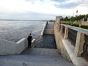 Волга в Самаре, замечательная, широкая, вольная, сильная. Во время моего пребывания в городе уровень воды стоял довольно высокий, очевидно, Саратовской ГЭС требовалось повышенное количество воды. Некоторые деревья, пляжи и спуски к воде были затоплены.