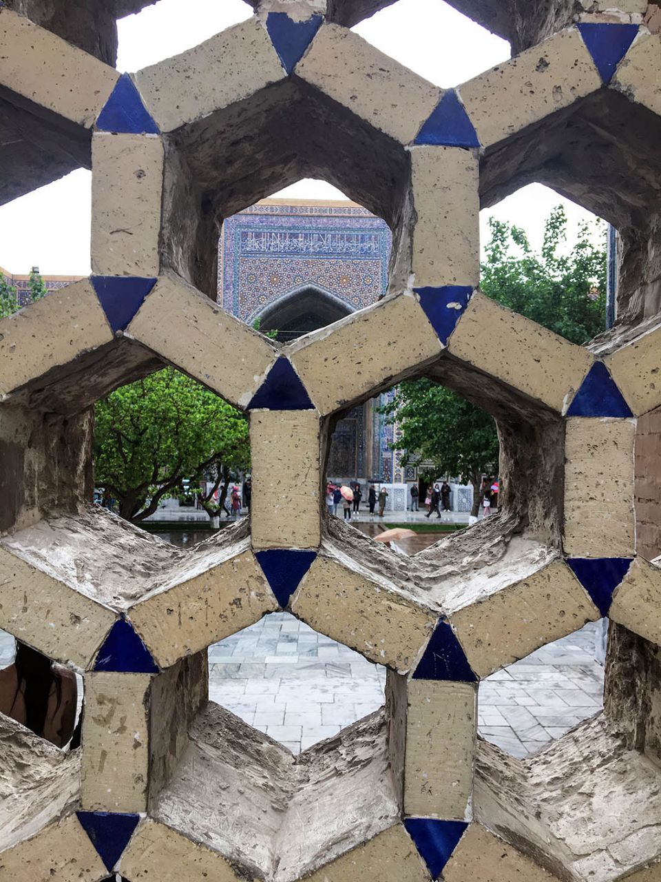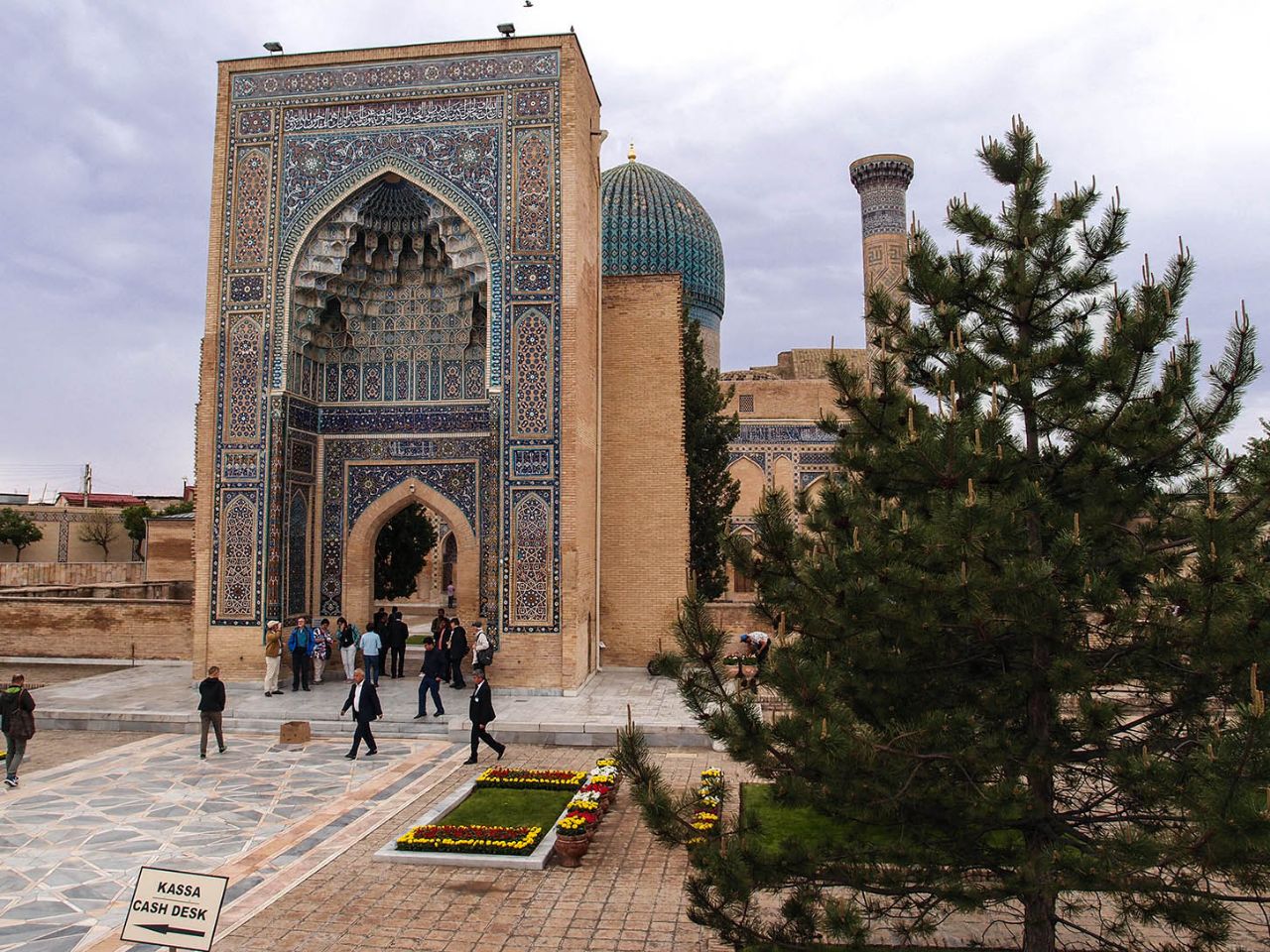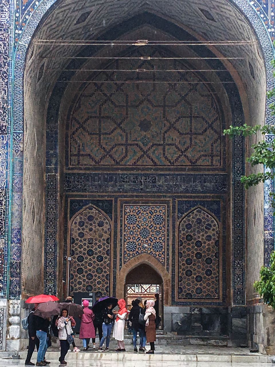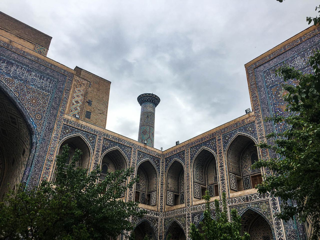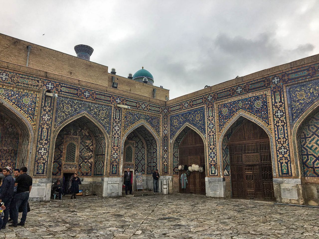 Впрочем, восторгаться архитектурой, едой и местным колоритом это ничуть не помешало. Пусть и под дождем, который то сыпал мелкой крупой, то выпускал длинные душевые струи, мы долго гуляли по знаменитой самаркандской площади и подробно осматривали формирующий её архитектурный ансамбль из трёх медресе.