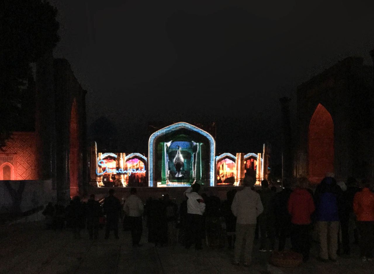 башне Давида. Но это были платные и весьма недешёвые аттракции. А вот в Самарканде шоу может посмотреть любой желающий, совершенно бесплатно. При этом качество очень высокое и ничуть не уступает иерусалимскому.- Адрес: