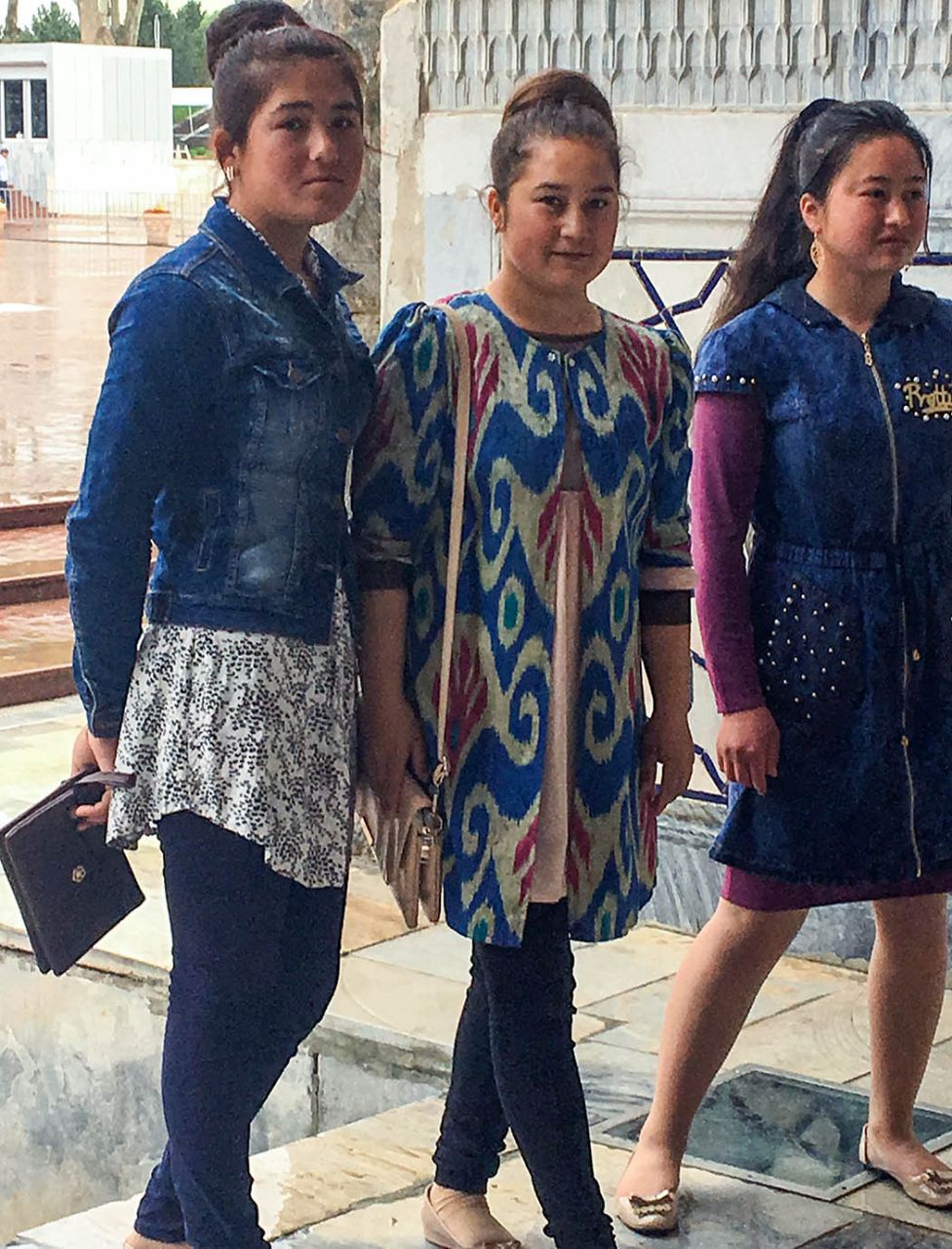 Что ещё занятно, большинство женщин были одеты в национальную одежду. Я вначале подумала, что это торговки, предлагающие сувениры в местах скопления туристов, и одеты так, чтобы привлечь больше внимания. Оказалось, что это — такие же туристы, как и мы, только приехавшие из других городов самого Узбекистана. Просто им нравится именно такая, традиционная форма одежды. Даже молодые девчонки к ней тяготеют, отнюдь не всегда выбирая «на выход» джинсы и кроссовки.