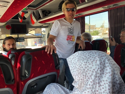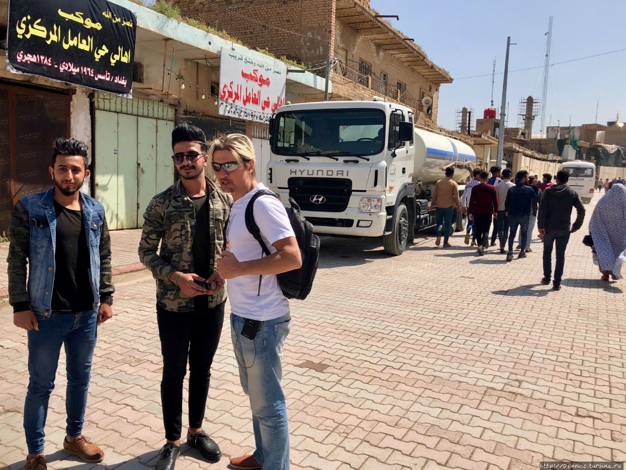 Нас сопровождают играющие музыку и поющие иракцы. Ну кто сказал, что они суровые и воинственные. В Самарре-городке мне понравилось.
