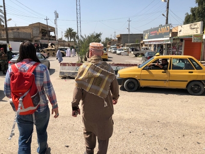 Да-да идем за Омаром, это наш опытный гид из принимающей турфирмы. А вот паспорта понадобятся на последующих контролях на входе в центр Самарры. Жители тем временем с интересом посматривают на нас.