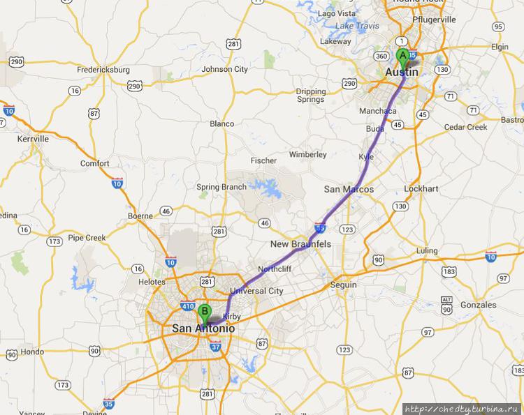 Дикий Запад. Холмистая Страна, но дорога зовет. Зовет нас все та же дорога, №35. На участке ее между Остином и Сан Антонио можно наблюдать как формируются конгломерации городов. Видимо так же постепенно срастались между собой через мелкие городки Лос Анджелес и Сан Диего. Практически вдоль всей дороги, где погуще, где пожиже стоят какие никакие здания. В основном не шибко красивые, но есть исключения. На полдороги между Остином и Сан Антонио расположен довольно милый университетский городишко Сан Маркос. Где то здесь в старые времена проходила Испано — Немецкая граница:) Обращает на себя внимание колоссальный комплекс магазинов, стоящий посередине ничего. Я бы не поехал в эти магазины не из Остина не из Сан Антонио, но машин на парковке там полно. Значит вполне обходятся без меня. Один раз проезжали мимо во время безналоговых выходных, там вообще на фривее пробка была.