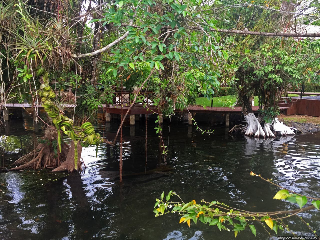 А есть множество деревянных помостов над водой, для пеших прогулок над рекой.
