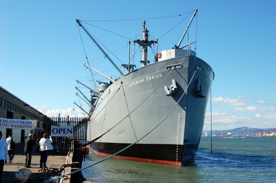Это музеи: подлодка USS Pampanito и SS Jeremiah O'Brien — один из двух находящихся на ходу судов типа “Либерти”, спущенный на воду в 1943 году и использовавшийся в течение Второй Мировой войны в Европе. Если посмотреть на карту Гугл в режиме спутника, то его сегодня нет — куда-то уплыл, возможно на профилактические работы. Конечно, я не мог не посмотреть на него изнутри. Вход был то ли бесплатный, то ли я нагло прошел без билета (потому что подобие кассы все-таки было), но в итоге я очутился на настоящем военном американском корабле. Внутри все так, как будто он только что вернулся из дальнего плавания, а кок всё ещё на месте и может приготовить вам матросский обед. Или адмиральский, смотря сколько заплатите.