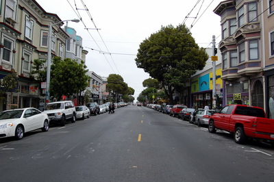 После Калифорния-стрит трамвайного движения нет вплоть до Маркет-стрит — очень красивой улицы, идущей от паромной станции на первом пирсе до театра Кастро и далее, через добрую половину города. Причем от пирса до театра по ней идут трамваи. Но по ней я прогуляюсь в следующие дни, а пока что, отужинав в сомнительной китайской забегаловке и приобретя 0,7 бурбона, топаю дальше и, немного всё же зацепив Маркет, выбираюсь на Хейт стрит. Меня интересует район Хейт — Эшбери, тут я и хотел найти что-то в плане дешёвого жилья: этот район — как Каосан в Бангкоке, тут всегда много фриков разного рода, очень пёстрая тусовка. В этом районе в 60-х годах происходило становление хиппи как движения. Не на самом перекрёстке, конечно, целый район здесь так и называется: Хейт — Эшбери, по пересечению этих улиц. Кто-то скажет, что Хейт — не очень подходящее название улицы для хиппи, но по-английски она пишется не hate, а Haight.
