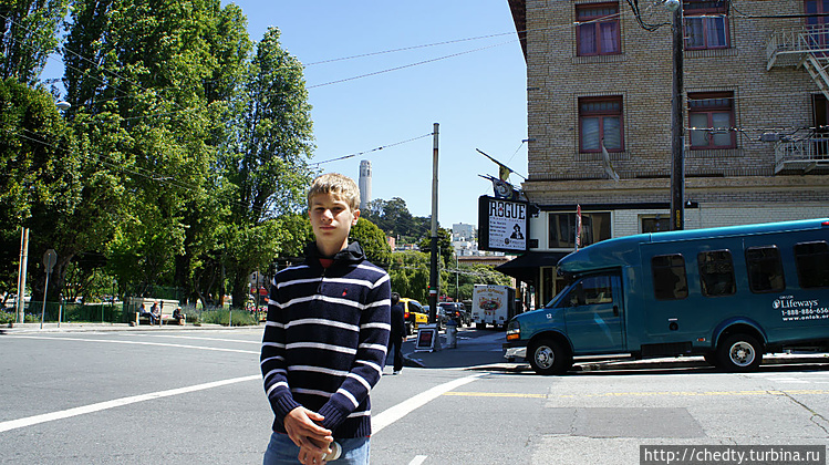Дорога от Волнат Крика до СФ заняла минут тридцать. Вышли на станции Паувелл у основания Русского холма, на котором находиться Чайна таун, чего только в географии не случается. С собой, по совету бывалых, мы перли сумку с теплыми свитерами, дождевиками и зонтиками. С погодой нам здорово везло, за все время нашего пребывания в СФ дождя не было. Для весны неделя без дождя — это фантастический результат. Не смотря на солнечную погоду свитера и кофты долго в сумке не залежались, с моря дул ледяной ветер. Я спросил у Ириши — взяла ли она крем от загара? но был послан в дальний путь. На самом деле, в интернете написано все про тех кто гуляет по СФ без крема, плохо им потом бывает вне зависимости от температуры воздуха. Мы исключения не составили.