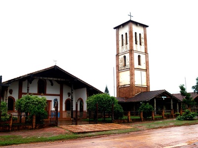 Церковь Ордена Иисуса в Сан-Игнасио. Старинный крест слева от фасада остался в наследство от первого здания одноимённой церкви, тоже почти ровесницы города.
