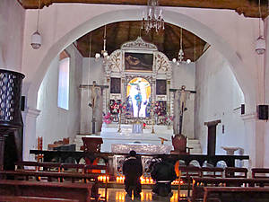 Именно здесь мне удалось пронаблюдать довольно странный для католической церкви ритуал молитвы, когда священиик не присутствует в церкви, а прихожане приходят самостоятельно читать молитвы. По-моему этот ритуал образовался в резултате пятивековой ассимиляции католической церкви в индейских общинах, где ранее индейцы самостоятельно приходили молиться к святилищам своих богов.