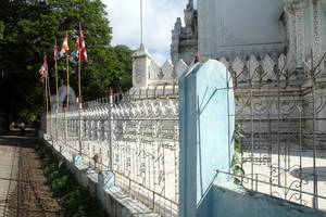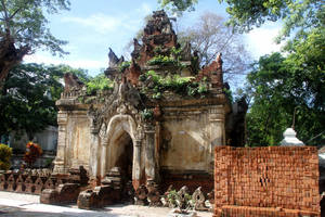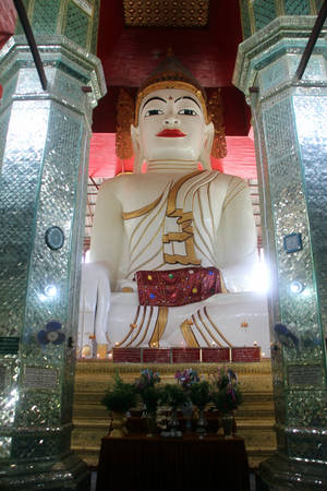 В Амарапуре был свой королевский дворец. Но его разобрали на части и перенесли в новую столицу — Мандалай. От времен, когда город был столицей Верхней Мьянмы, здесь сохранилось только несколько монастырей и храмов. Самый оригинальный храм стоит прямо у начала моста. По внешнему виду он ничуть не отличается от стандартных бирманских храмов. Да и статуя Будды внутри обычная — пусть и большая. Здесь самое интересное — станы и колонны, украшенные миллионами кусочков зеркала. Попадающий через окна свет, многократно отражаясь и преломляясь, заполняет все пространство храма, делая его похожим не на темную пещеру (как это обычно и бывает в местных буддистских храмах), а чуть ли не на бальный зал какого-нибудь европейского королевского дворца.