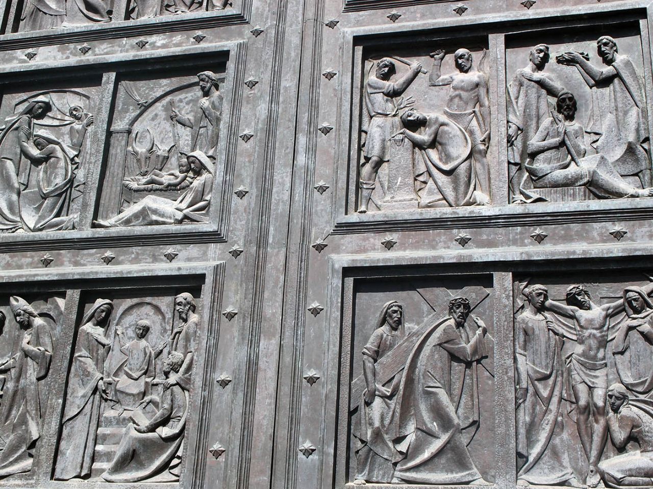 Портал украшают кованые створки с изображением святых и Христа. 40 различных сюжетов