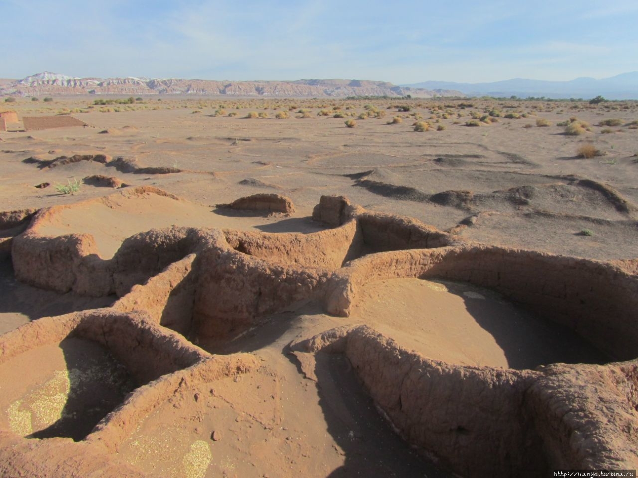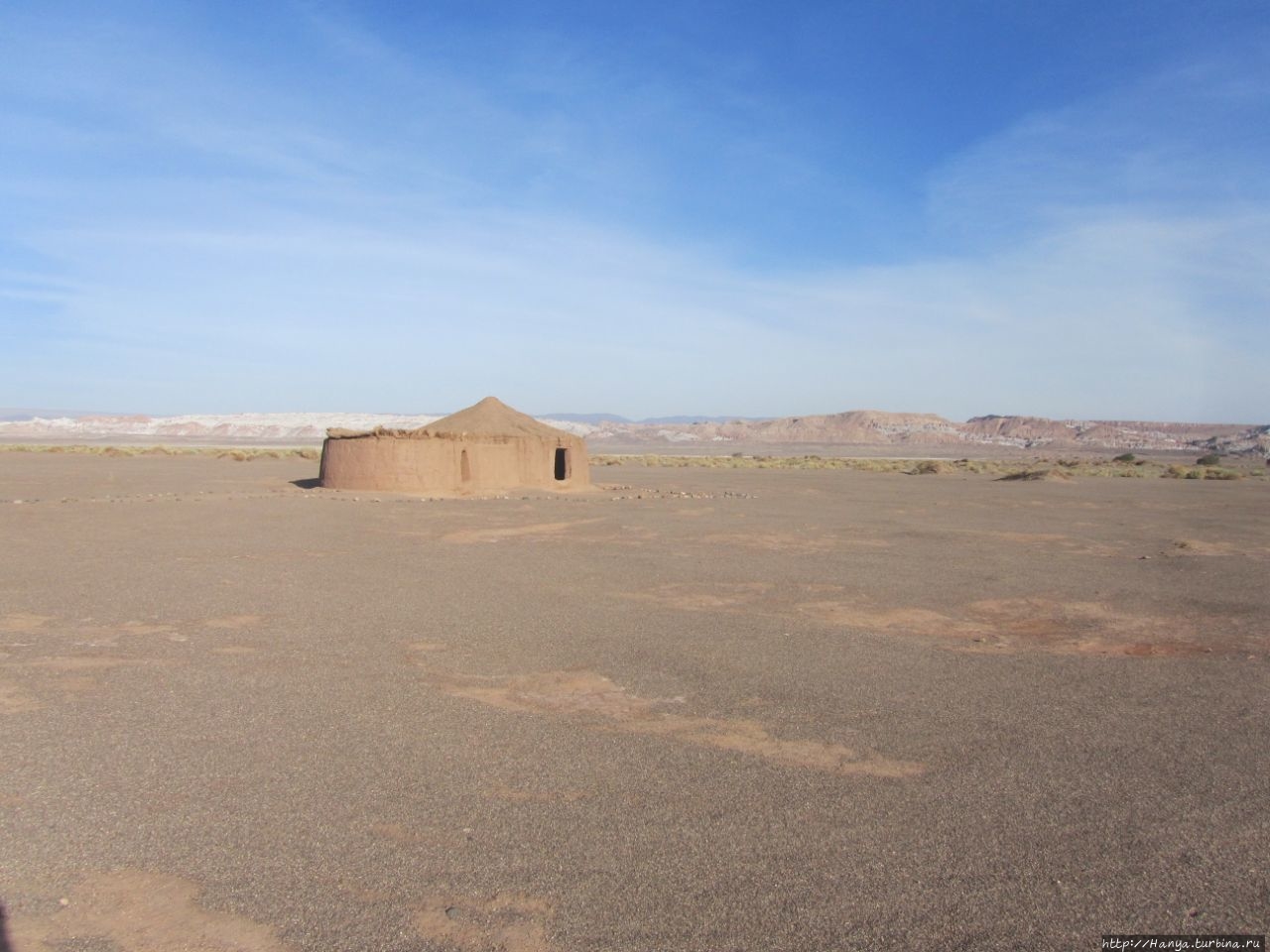 Еще достаточно рано, и мы пока не чувствуем опасности ультрафиолета, и идем по дорожке к собственно археологическому памятнику. Пустынный пейзаж с соляными горами у горизонта составляют сумасшедшие панорамы для съемок, несмотря на их безжизненность, а уникальная деревня Тулор возникает как мираж посредине пустыни.
