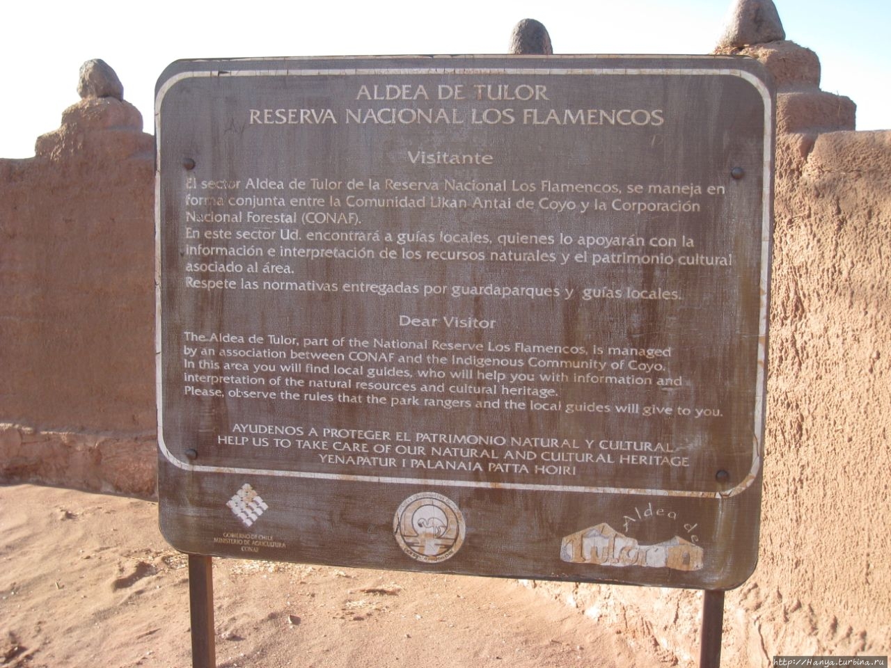 Вход на территорию Aldea de Tulor стоит 800 песо, если кто-то надумает преодолеть 8 км к югу от Сан Педро де Атакама самостоятельно.