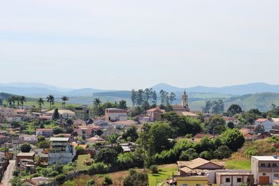 И в самом деле, воздвигнут под самый конец 2013-го. Справа на втором плане виднеется западный портал города, через который и рекомендую ехать всем путешествующим по всё более популярному автомаршруту Estrada Real. Дело в том, что так называемая "окружная дорога Сан-Висенти-ди-Минас", на которую посылают Google Maps и всяческие навигаторы совершенно неадекватна. М.б. кто-то когда-то уже и отчитался об укладке на ней асфальта, но это фикция: он присутсвует только около развилок, а далее там несколько километров ухабистой и абсолютно непопулярной грунтовки. Лучше проехать через город: и короче, и безопаснее, и удобнее. Не бойтесь в нём заблудиться, он небольшой (7 тыс. жителей), сквозные пути несложные, и обозначены неплохо.