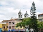 Кафедральная Базилика Св. Богоматери Пилар, но на ее юго-западном конце, после которого уже начинается окраина. И эта неспроста: в колониальные времена эта окраина отводилась под жилща чёрных рабов, и для них-то церковь и предназначалась, как и в других старинных городах региона, обществом с полным названием Irmandade de Nossa Senhora do Rosário e São Benedito dos Homens Pretos.Построена в самом начале 18-го века (освящена в 1719-м), времена расцвета барокко, но сейчас внешний вид и прямоугольные формы фасада напоминают о неоклассицизме более позднего периода. И действительно, как и в случае Кафедральной церкви, они были приобретены в ходе фронтальных достроек: портик и стильная входная дверь датируются 1753-м годом, а две новые колокольни и вовсе 1936-м (ранее была одна, и она уже начинала разрушаться).