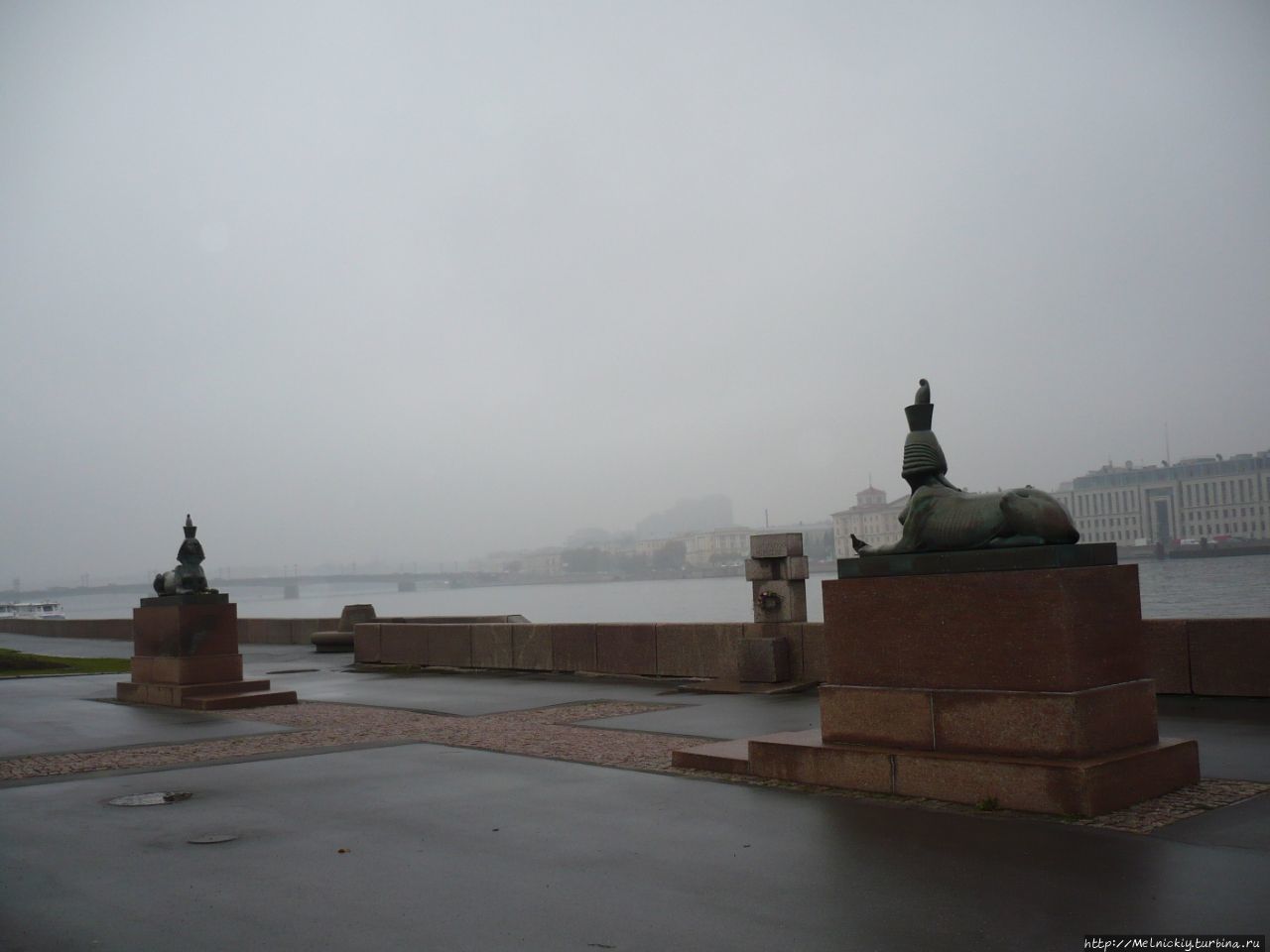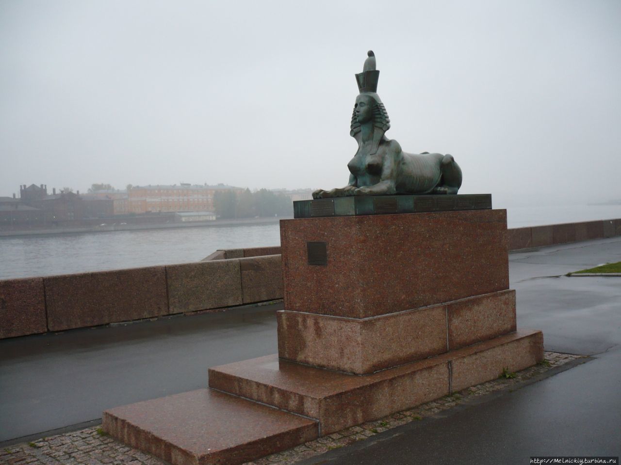 Между фигурами сфинксов, на парапете набережной, из гранитных блоков сооружено окно, символизирующее тюремное, с решеткой. Под окном прикреплен «терновый венок» из колючей проволоки.