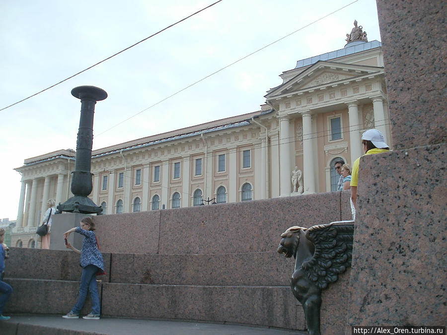 Перед зданием Академии на набережной сначала хотели установить коней Клодта, выпускника Академии. Но в Египте были куплены сфинксы. Куда же их поставить — конечно перед Академией. А кони на Аничков мост.