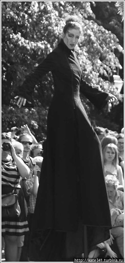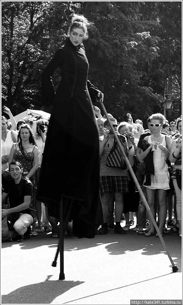 А вот французско-испанское трио меня основательно покорило. Мою дружбу с жирафами прервала громкая музыка танго, сопровождающая процессию. Трое товарищей на ходулях гордо шли по аллеям парка, а за ними следовала разношерстная парковая толпа. Все улыбались и шли как завороженные. К ним решила присоединиться и я, и совсем не зря.
