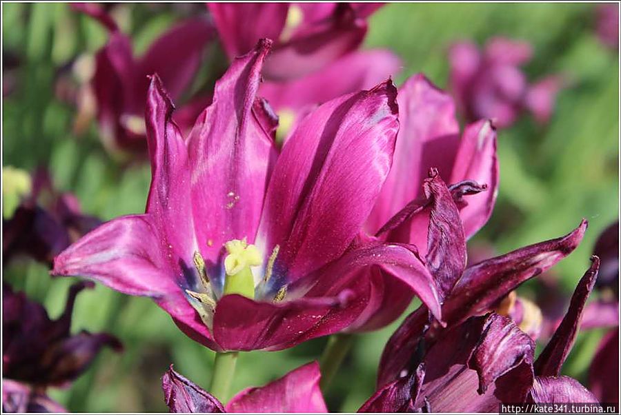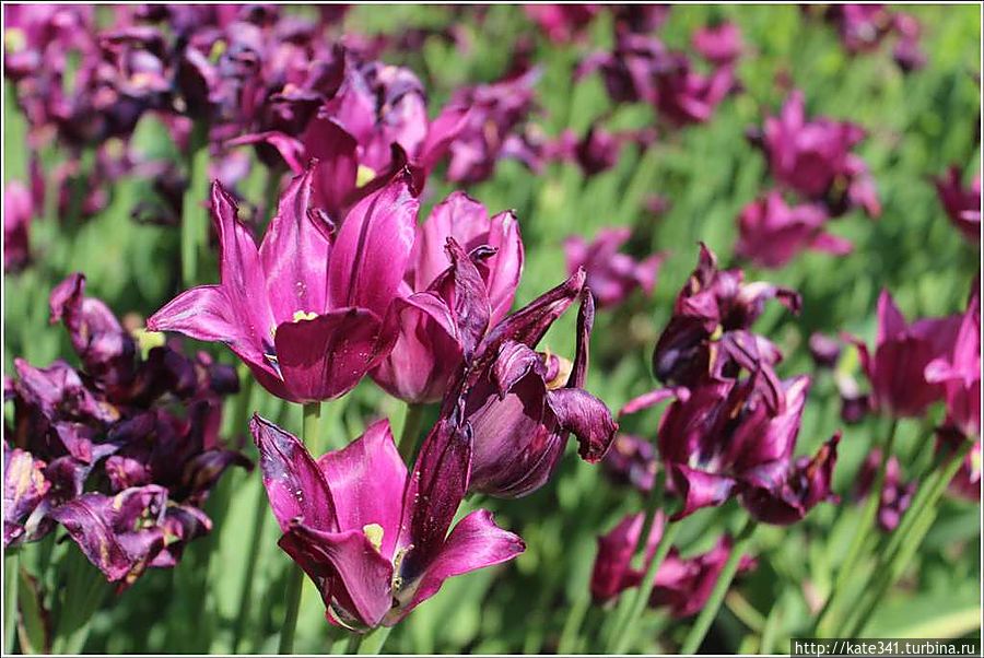 В эти дни проводился фестиваль тюльпанов, но, похоже, я слегка опоздала, и многие цветочки уже утратили свой первоначальный свежий вид, однако, есть и выжившие экземпляры.