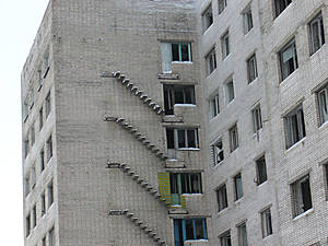 Во время строительства в 2003 г здание отклонилось от вертикали на 58 см, но все равно был сдан и заселен. После сдачи в эксплуатацию дом отклонился еще на 20 см. Местные жители прозвали его "Пизанской башней". Пришлось здание расселять и усиливать фундамент. Сейчас в этом доме опять живут люди. А вот за ним во дворе стоит непонятно, почему, брошенное на заключительных стадиях строительства здание (вроде бы, спецдома для ветеранов). Почему строительство брошено, понять сложно, — дом подведен под крышу, и основные этапы строительства завершены.