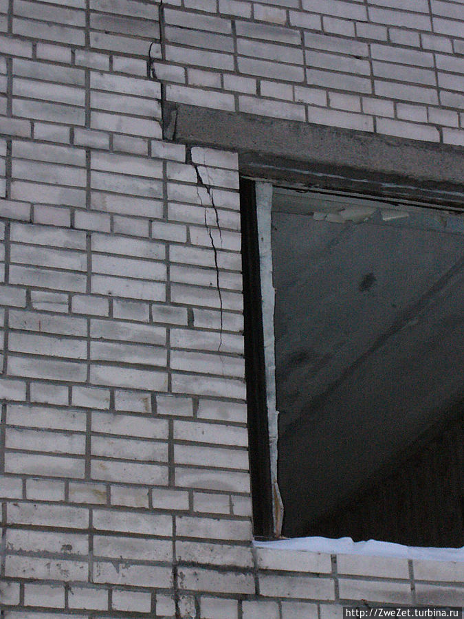 Из-за таких трещин, идущих по всем стенам здания, соседнее с рухнувшим общежитие тоже пришлось расселить