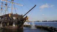 И в довершении устроил шоу – зажег огни на ростральных колоннах и бабахнул салютом.