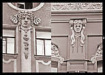 Мир человеческих масок более многообразен и также несет смысловую нагрузку для архитектурных построек. Прототипами части человеческих масок являются персонажи древнегреческой мифологии.