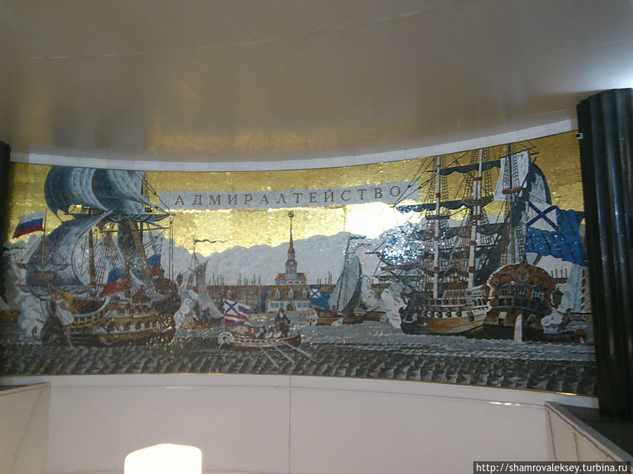 Новая станция Петербургского метро посвящена истории Военно-Морского флота от Петра Великого до адмирала Макарова. Вход в метро расположен на Кирпичном переулке между Большой и Малой Морскими улицами недалеко от Невского проспекта и Адмиралтейства. По имени последнего станция метро и получила своё имя "Адмиралтейская"