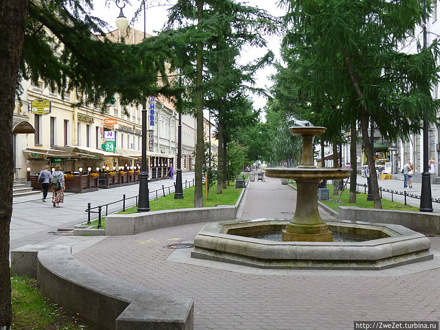 Тем, кто положительно относится к фастфуду, можно здесь же, у метро, подкрепить силы в местном Макдональдсе, противникам американской еды тоже есть где заправиться энергией, — кафе и ресторанов в этой части острова великое множество. Отдохнув на уютном бульварчике, напоминающем центр Парижа, по Среднему проспекту вернемся к стрелке Васильевского острова, откуда и начался наш утомительный, но весьма интересный маршрут
