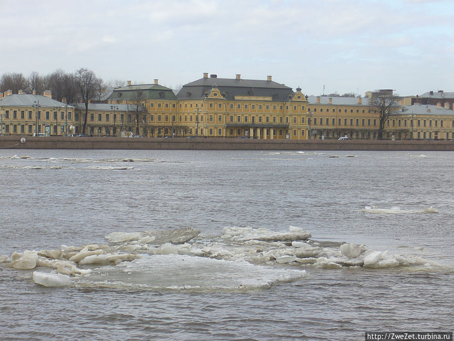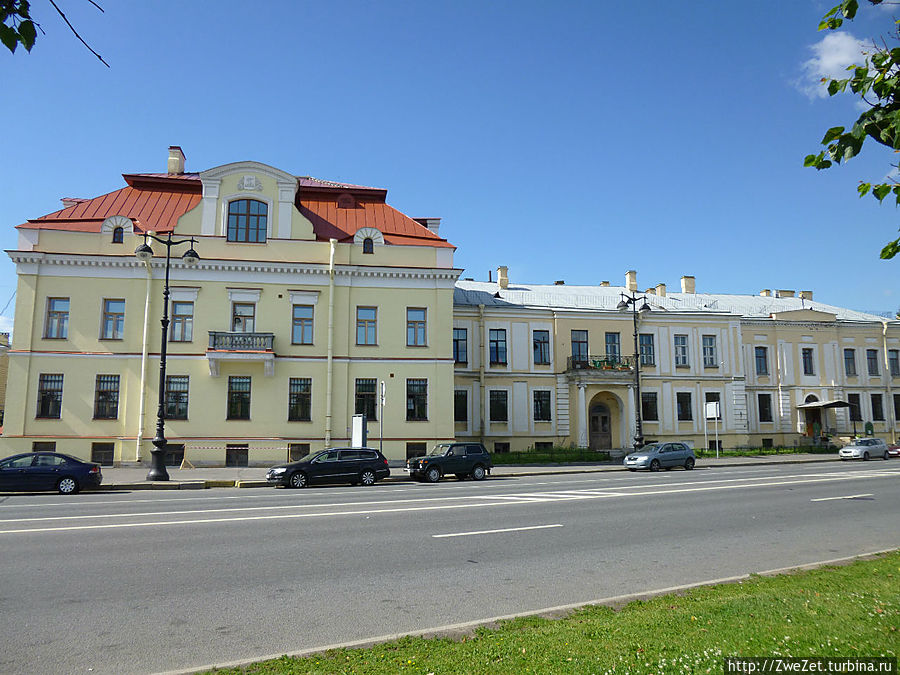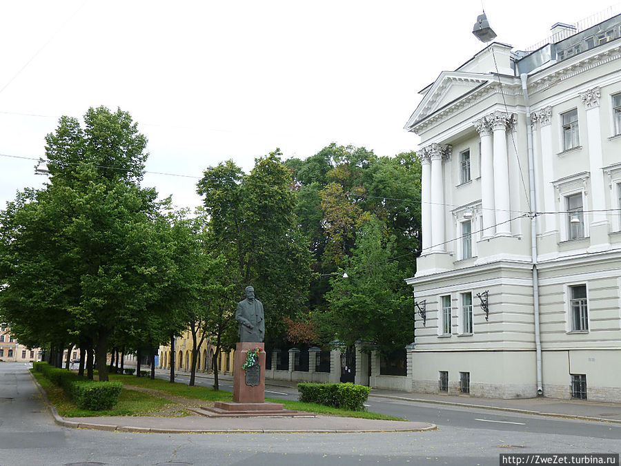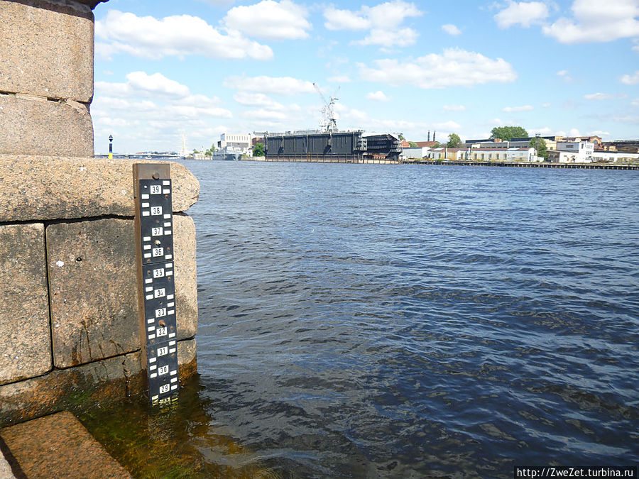 Она упирается в здание Горного института. Здесь находится шкала, по которой измеряют уровень подъема воды в Неве во время наводнений.