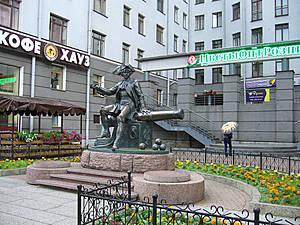 7-я линия приведет нас к станции метро Василеостровская. Возле нее можно увидеть очередной оригинальный памятник.