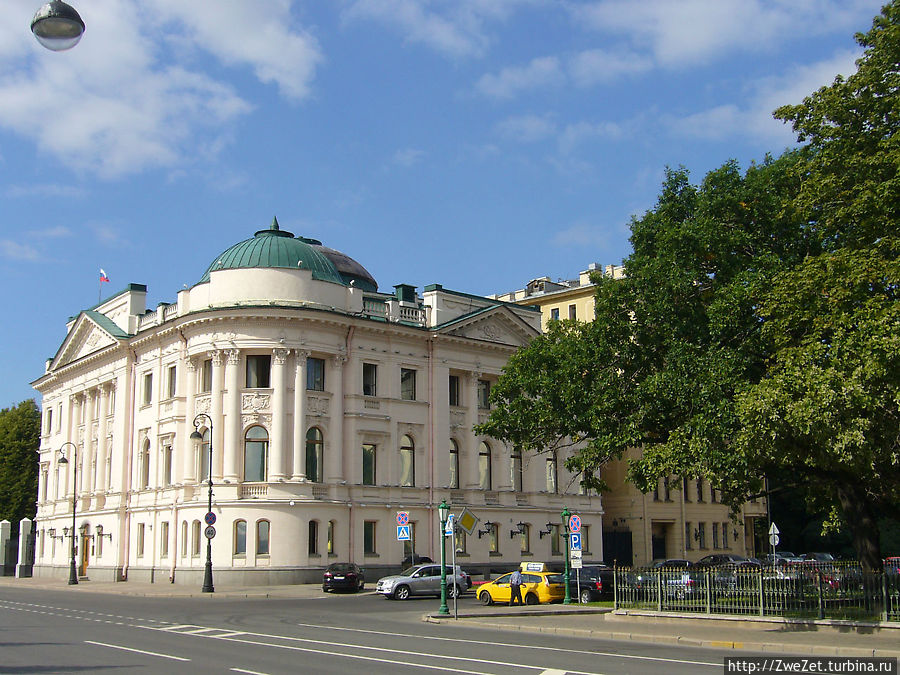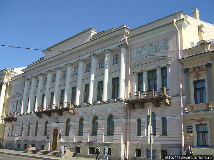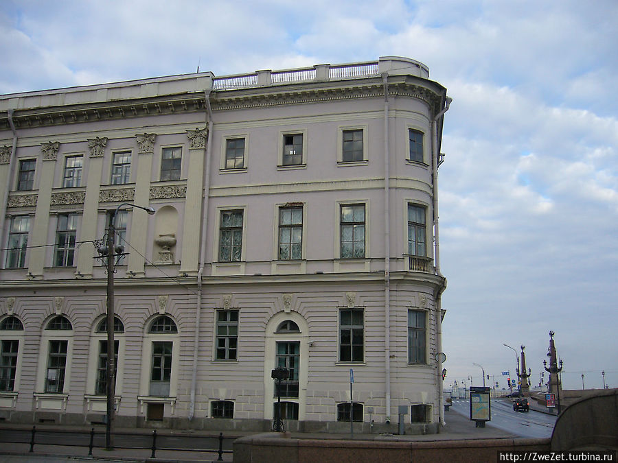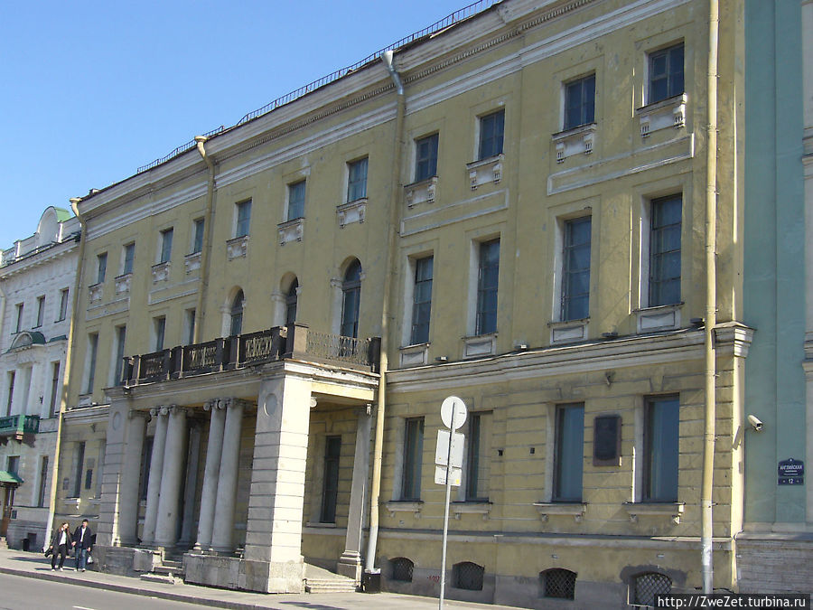 На Английской набережной выстроились в ровную шеренгу дворцы и особняки петербургской знати. Под № 10 — дом двоюродного брата Петра I по матери А.Л.Нарышкина (перестроенный, конечно). Этот дом описывал в своем романе "Война и мир" Л.Н.Толстой. Согласно роману, именно здесь 31 декабря 1809 г состоялся первый бал Наташи Ростовой.