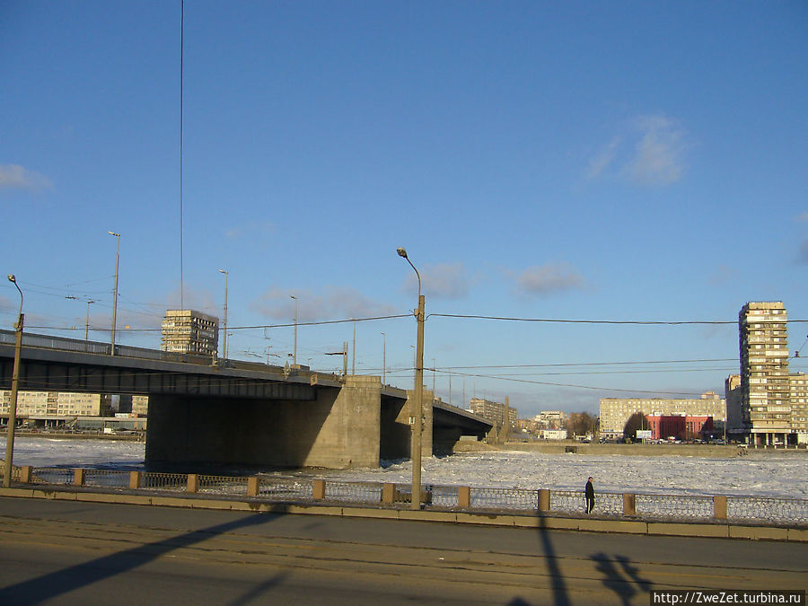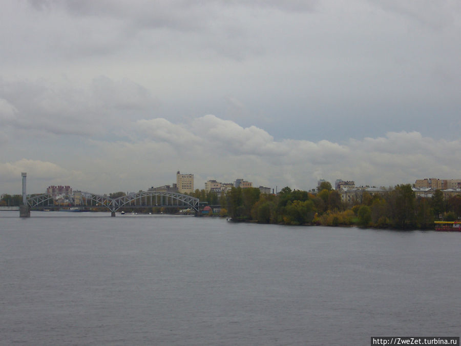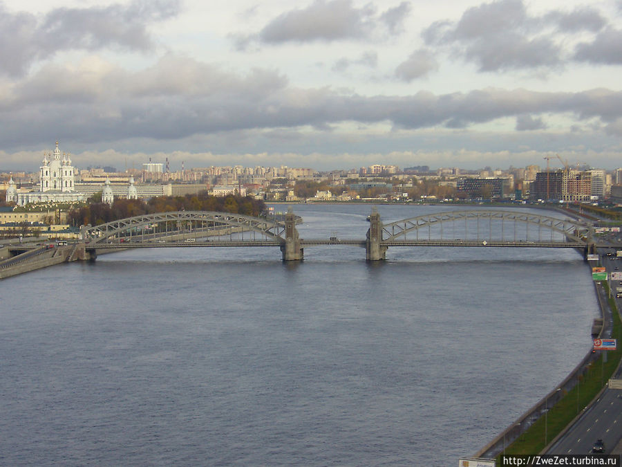 Очередной по ходу движения мост — Большеохтинский. Он не похож на изящные мосты с ажурными решетками в парадной части города. Вроде бы, этот стиль называется конструктивизм. Он был в моде в первой половине ХХ века.