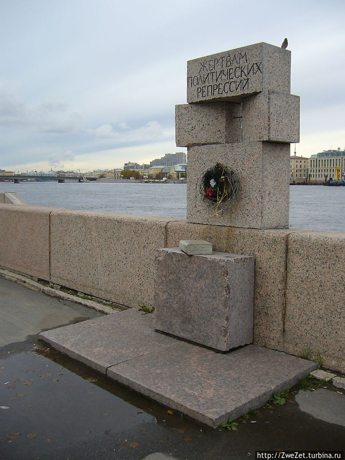 А мы перейдем по Троицкому мосту на другой берег Невы и окажемся на самой первой площали Петербурга — Троицкой. Здесь был первый в городе Гостиный Двор, сперва из дерева, затем из камня. А сейчас здесь памятник жертвам сталинских репрессий.