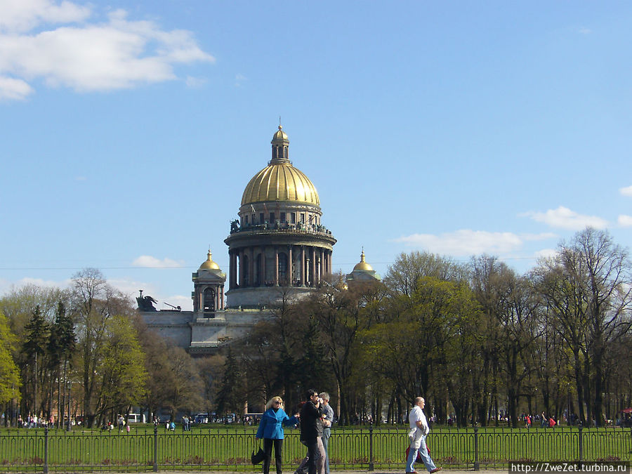 Та самая Сенатская площадь отсюда в двух шагах. За деревьями золотой купол собора Исаака Далматского, кстати четвертого по величине в Старом Свете.