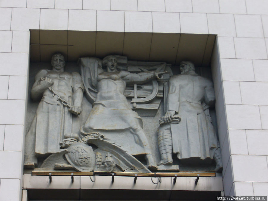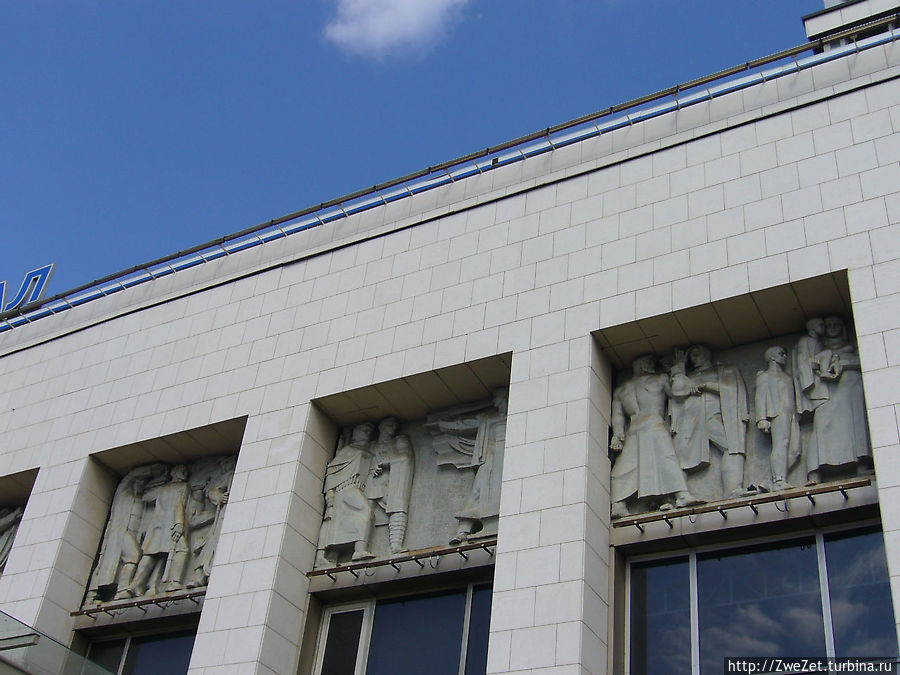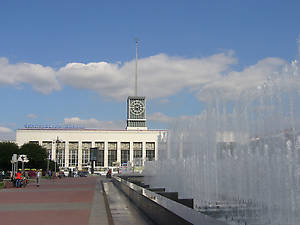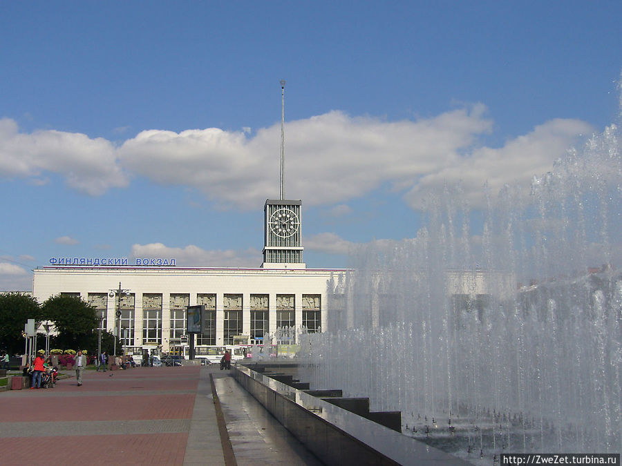 В глубине площади Финляндский вокзал. Современное здание вокзала построено в 1960 г , а первое здание вокзала здесь появилось в 1870 г. Кстати, на горельефах, украшающих здание вокзала, есть изображения, оскорбляющие нынешнюю российскую власть, что уголовно наказуемо, согласно ныне действующему Кодексу.