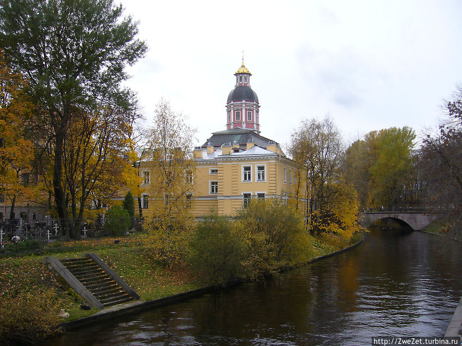 За территорией лавры с Невой соединяется Обводный канал. В него впадает речка Волковка. До возникновения Петербурга здесь была финская деревня Сутела (от слова "суси" (в переводе с финского "волк"). Здесь и правда водилось много волков. В середине XVIII века на берегах Волковки возникло кладбище. Сначала сюда свозили бедных со всех концов столицы. В XIX веке кладбище стало всесословным. Могилы на нем из-за сырости этого места были разделены деревянными дорожками с мостками. Название "мостки" произошло от этих дорожек. Раньше были Цыганские, Немецкие, Духовные мостки, — т.е участки кладбища. Сейчас известны лишь Литераторские мостки, где похоронены многие знаменитые деятели науки и культуры. Там же находится захоронение матери и сестер В.И.Ленина. Он тоже хотел лежать с ними рядом, и до сих пор идут разговоры о перенесении его праха из Мавзолея в Москве сюда, на Волково кладбище.