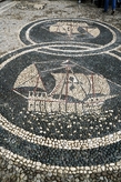 На набережной Санта-Маргерита-Лигуре стоит церковь святого, считающегося покровителем моряков — св. Еразма. Информации о времени постройки и прочих фактах мне не попалась, поэтому расскажу только о своем впечатлении. Фасад церкви визуально поделен на 3 части, они покрашены в разные цвета. Небольшая площадь перед зданием оформлена мозаикой, белыми камушками на темном фоне выложены корабли. У входа оставлена старая рыбацкая лодка. .