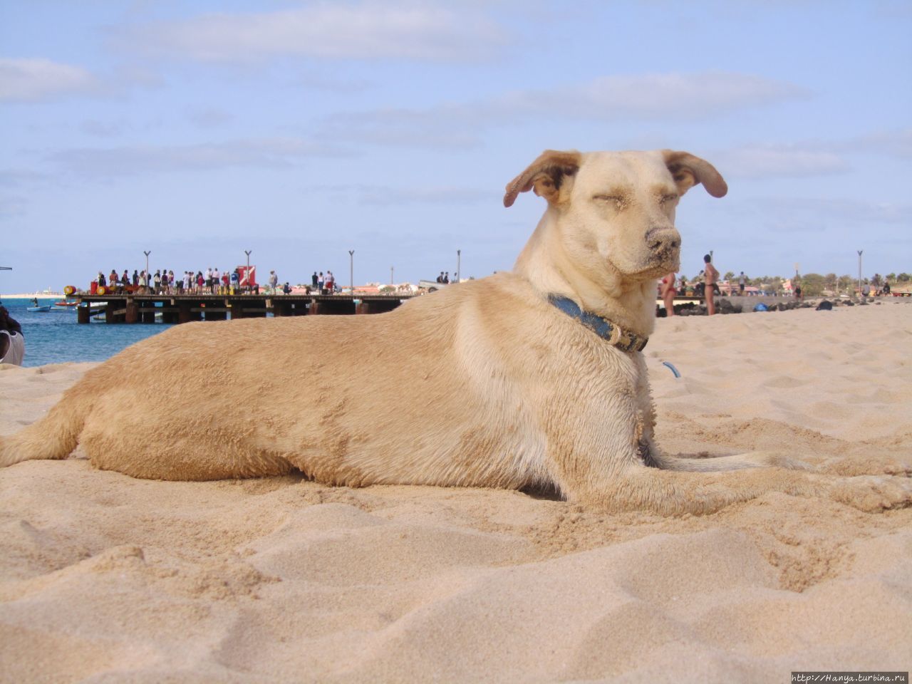 Полежав чуток, все же перешли к активной стадии отдыха, т.е. пошли прогуляться по бережку. Лежавшая рядом собака, у которой даже глаза были в песке, даже ухом не повела на наш уход.