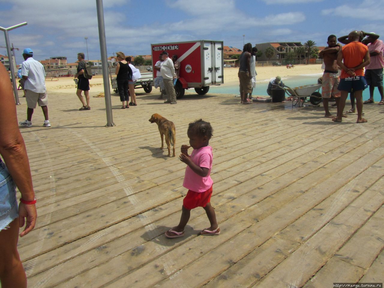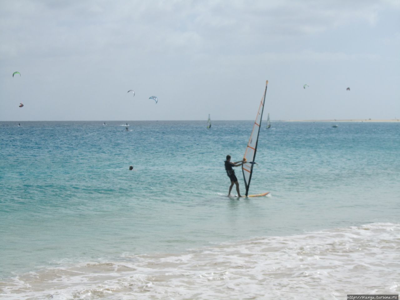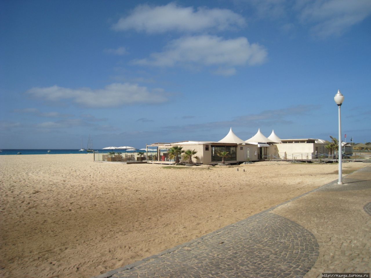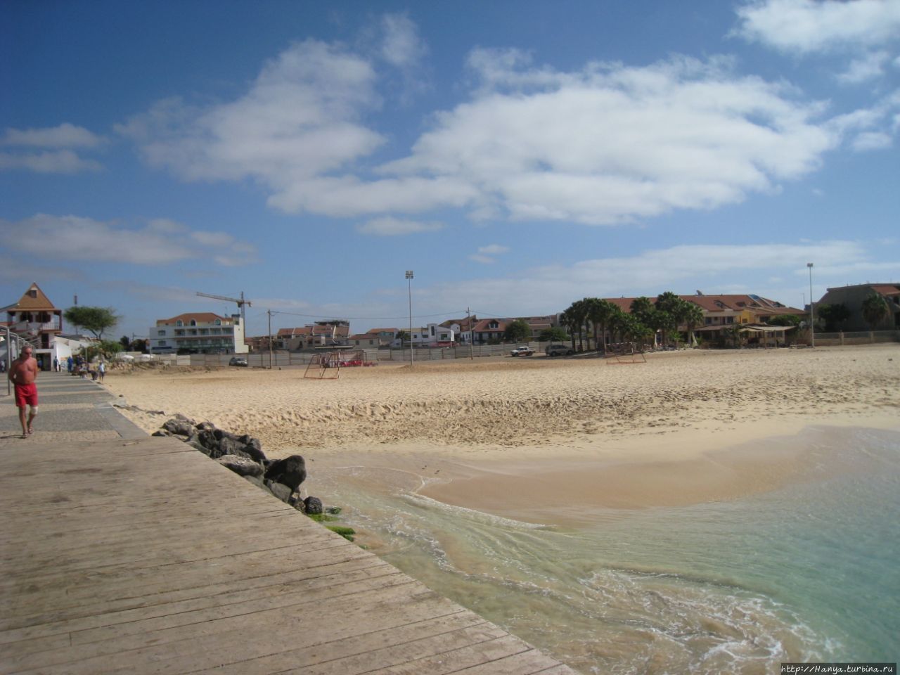 История Кабо Верде и почему наш выбор пал на о. Сал? Ч.14) встретил нас ощутимым ветром и утренней серой хмарью. Еще не отошедшие от сна, идем на завтрак. Утренняя трапеза за белыми пластиковыми столиками с видом на голубой бассейн и виднеющееся море затянулась, да и куда торопиться на отдыхе! За это время тучки ветром сдуло, и солнце «расталдыкнуло свои лучи по белу светушку». Забыв о нашей российской дождегнили, мы приземлились на пляжных полотенцах около самого берега моря. Попробовав воду, я не сразу рискнула искупаться, и напрасно… Намазавшись кремом с защитой в 30 единиц, почти полностью отключились от реалий каждодневной жизни, прекратив даже мысли думать. Однако, если бы не ветерок, то долго выдержать это возлежание было бы невозможно.