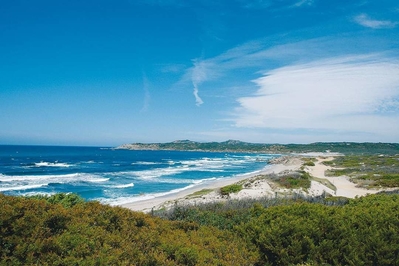 Замечательный красивый пляж Spiaggia Lido di Rena Majore с ровным светло бежевым песком находится на севере острова Sardegna на побережьи около города Aglientu frazione Rena Majore. Вокруг изумрудная зелень деревьев и кустарников, море кристально чистое чудесного бюрюзового цвета. Видео пляжа.