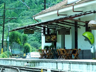Пиндамоньянгаба). Сейчас там циркулирует только одновагонный трамвай, способный преодолевать предельную для гладкорельсового транспорта крутизны пути. Но в начале 20-го века это был главный способ доставки не только пассажиров, но и грузов в один из самых высоких городов страны, соответствено и железная дорога достигает на пути в него рекордной для Бразилии отметки за 1800 м. Но после прокладки современных шоссе транспортное значение этой линии утрачено. Да и туристический компонент бурлит в основном в черте города Кампус-ду-Жорда, а также на небольшом участке долины. Сквозной рейс сейчас всего лишь один в неделю — по пятницам. И есть ещё два ежедневных рейса идёт из Кампус-ду-Жордан только до этой станции, туристов привозят на полчасика — полюбоваться панорамами со смотровой площадки, а разворачивают вагон с помощью старинного поворотного круга, вручную.