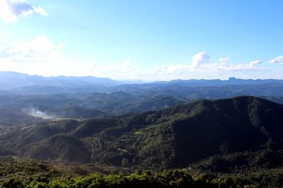 Именно так, эта одна из немногих вершин горной гряды Мантикейра, на которую можно легко заехать на автомобиле: расстояние от самого городка Санту-Антониу всего 7 км по неплохой дороге, первые километры пути заасфальтированы, самые крутые участки по склону горы выложены бетонными плитками или камеными блоками.