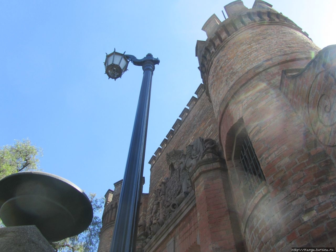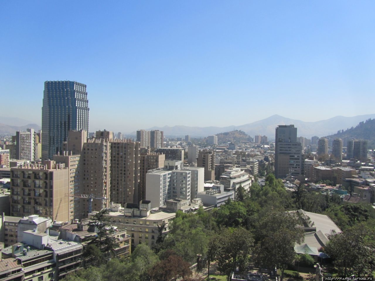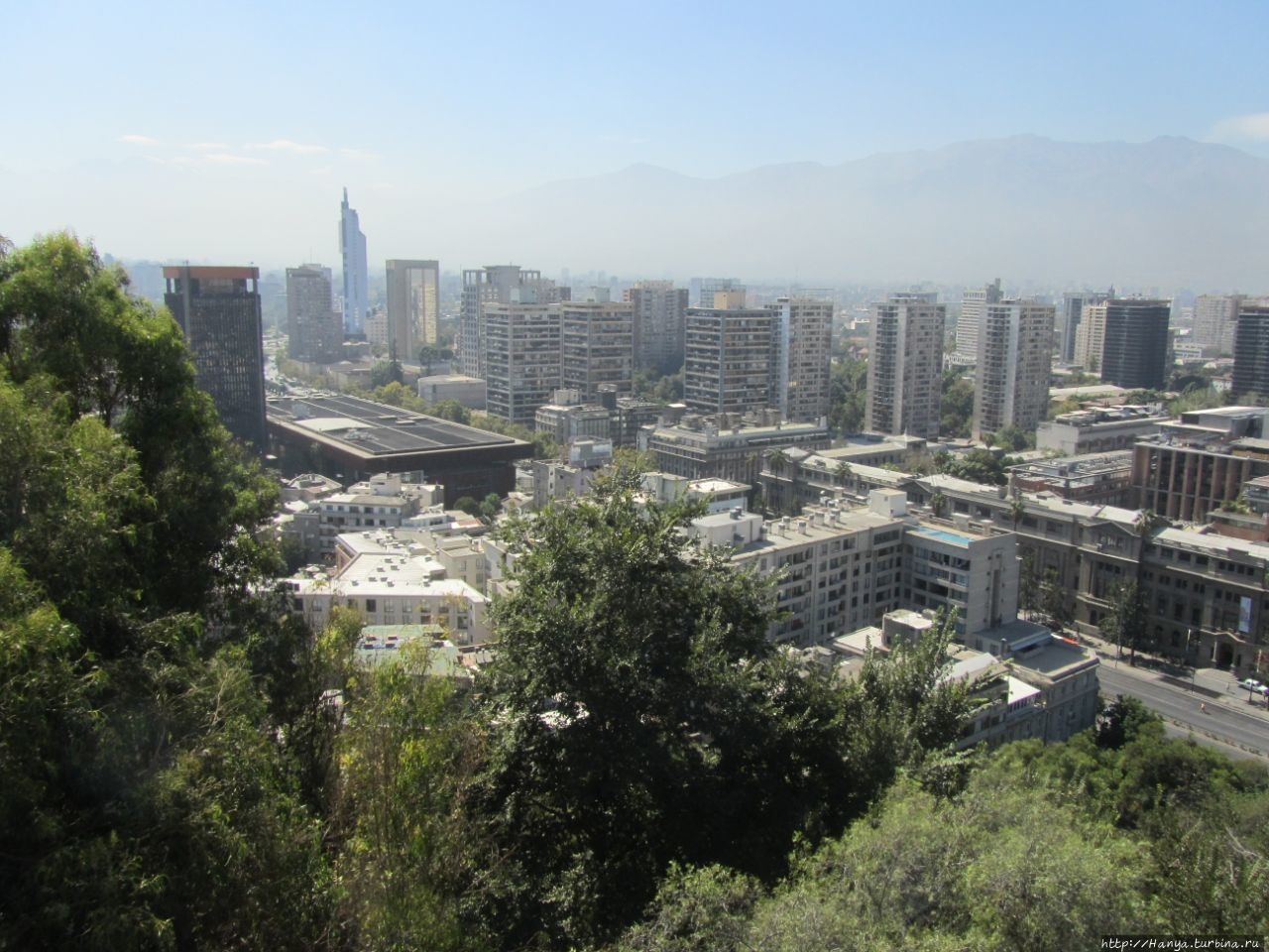 Дева Мария – ангел-хранитель Сантьяго и вид на столицу. Ч.5).Спускаемся вниз по боковой лестнице и попадаем на площадь Педро де Вальдивия, где садимся на красивые скамейки, покрытые бело-синими изразцами.